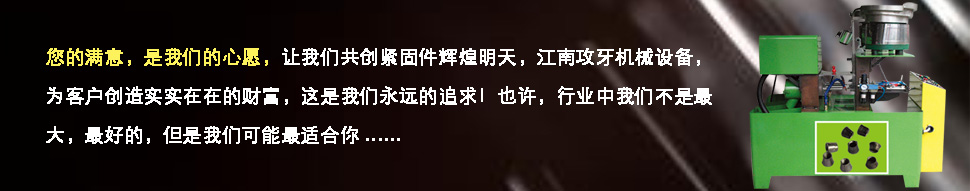 温州市洪南机械制造有限公司(原温州市龙湾江南螺母攻牙机械厂),座落在温州经济技术开发区滨海园区,是一家专业从事研发、制造、销售螺母攻牙机的企业。洪南机械生产的“江南”牌螺母攻牙机畅销全国各地,且深受广大用户一致好评,在同行业中也享有盛名。